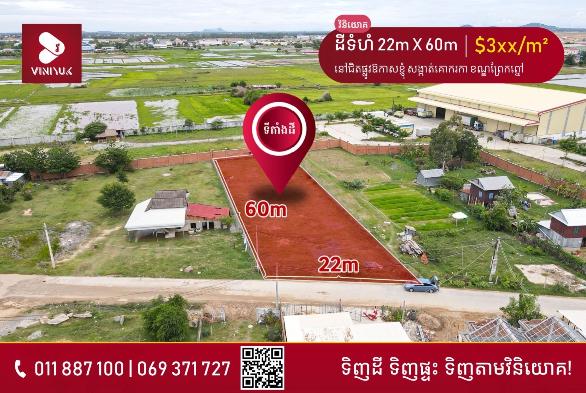 ដីទំហំ 22×66 លើផ្លូវ 20 ម៉ែត្រ