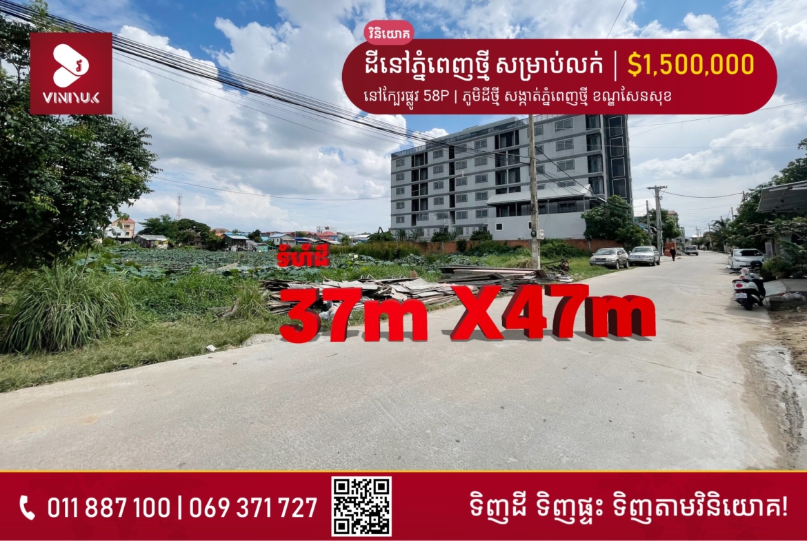 ដីទំហំ 37m X 47m ជិតផ្លូវ 58P
