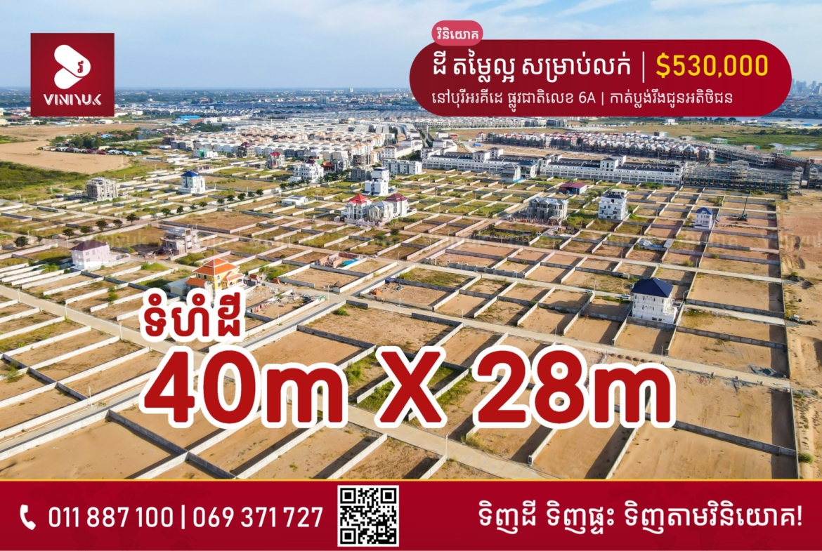 ដីទំហំ 40m X 28m បុរីអរគីដេ 6A