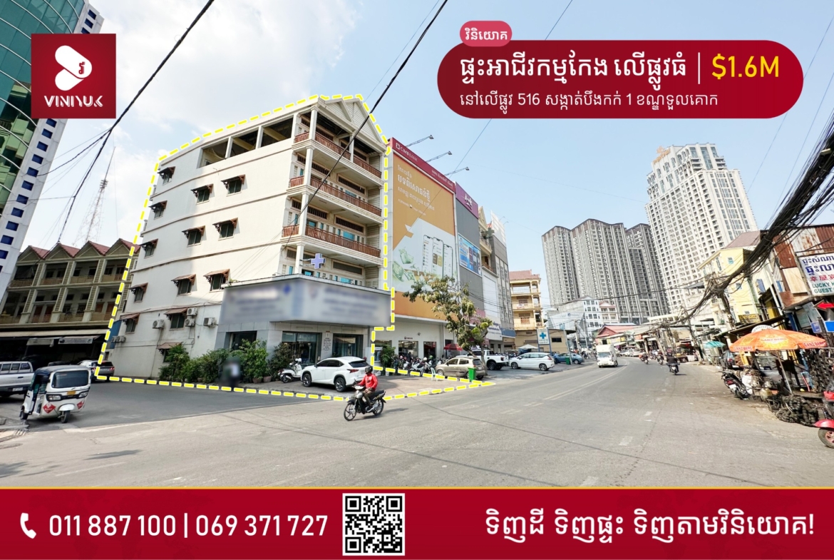 ផ្ទះអាជីវកម្មកែង លើផ្លូវ 516 កែងផ្លុវ 283 ទួលគោក