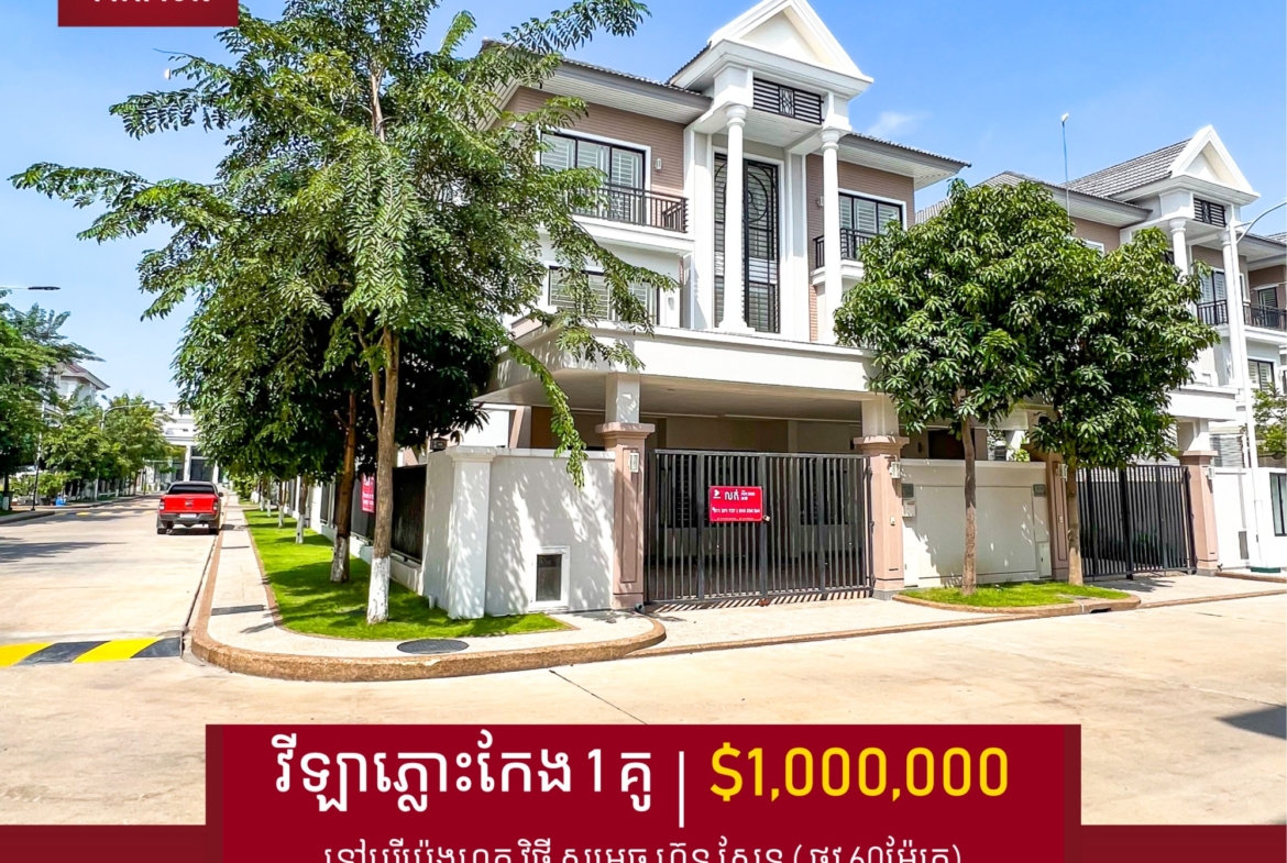 វីឡាភ្លោះ កែង នៅបុរីប៉េងហួត 60 ម៉ែត្រ